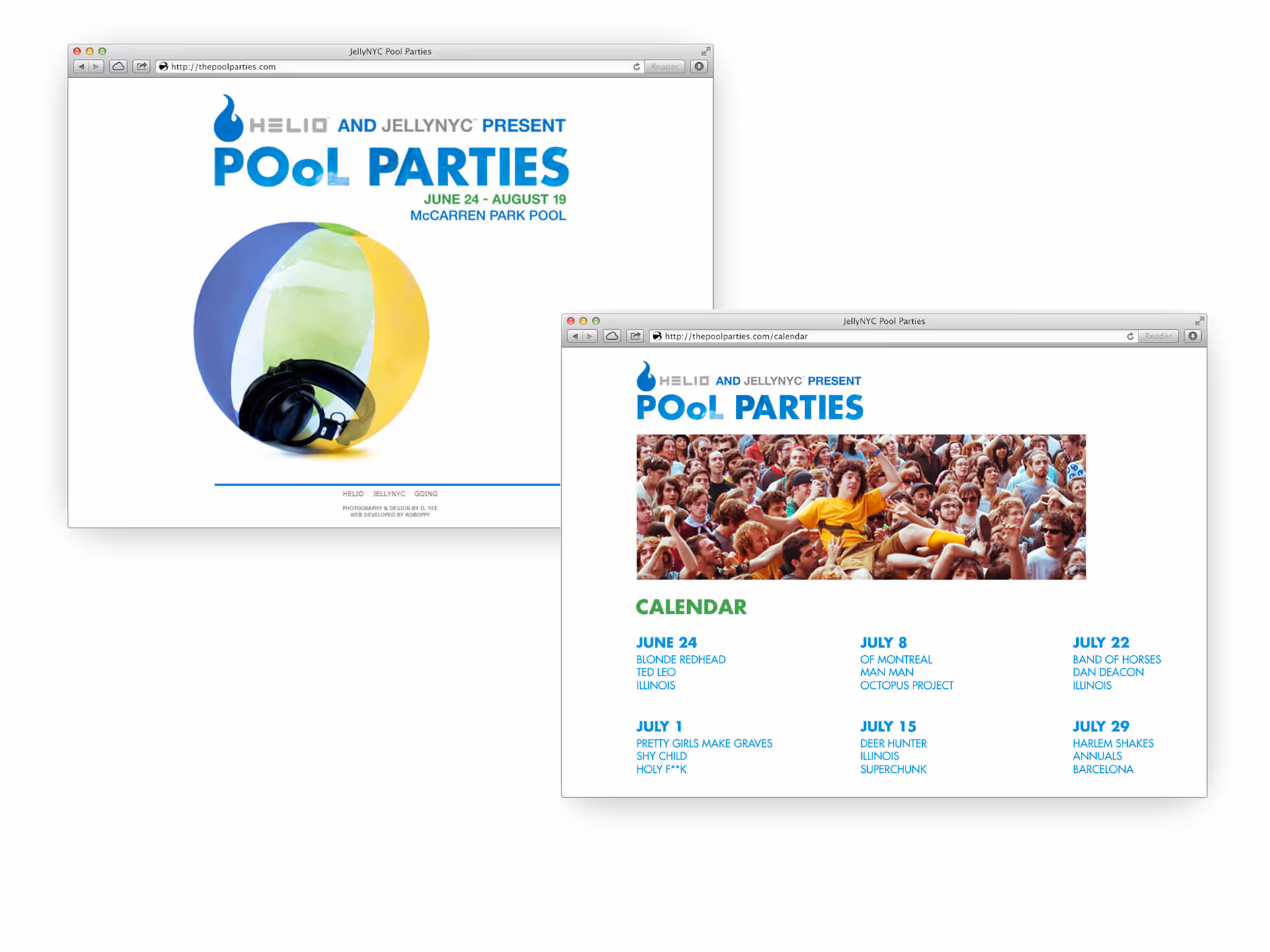 Shown on this page are style guides for The Pool Parties branding and typographic treatments on digital content.